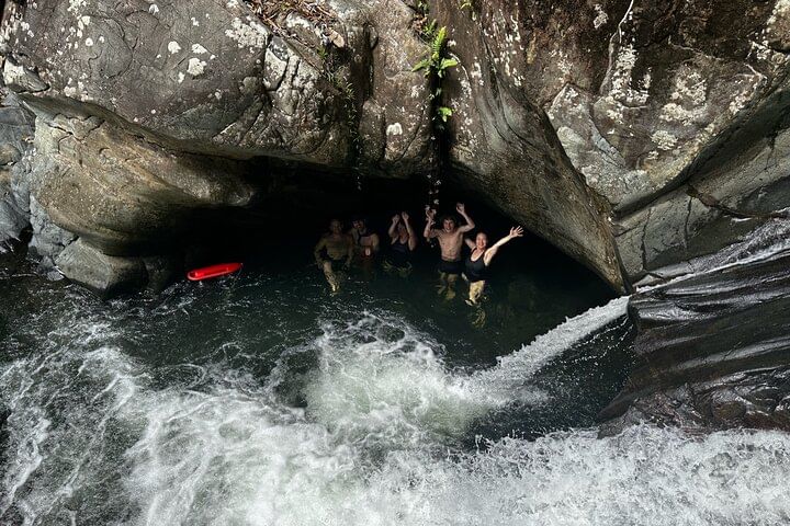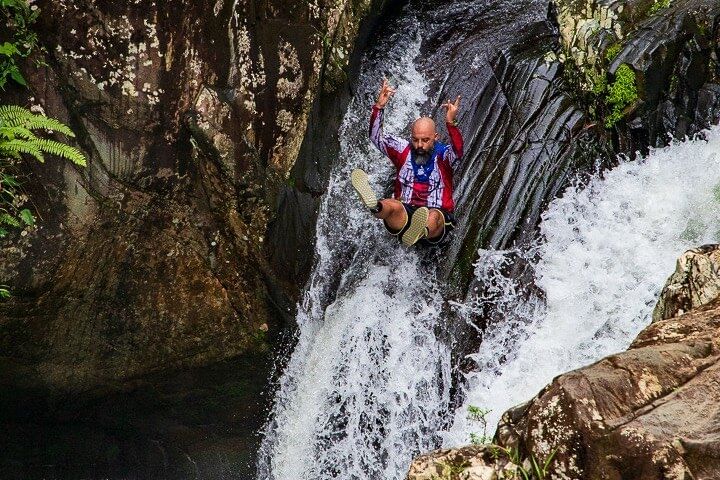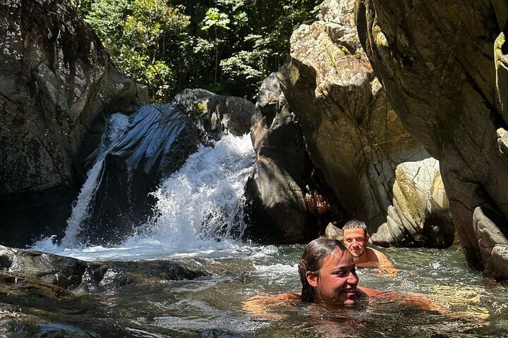 We will hike an off the beaten path trail for 20-30. At this path there are plenty of exotic plants and birds to see, the guide will share all the details about the flora and fauna of this amazing place. At the Tinajas natural pool and waterfalls, you will be able to swim on crystal clear waters and have an option to adventure on a swinging rope, or even jump up to 30 feet high rocks. We will then proceed to another 5-10 hike to a natural pool with a 20 feet natural WATERSLIDE and with an optional 3 feet high jump from a rock.